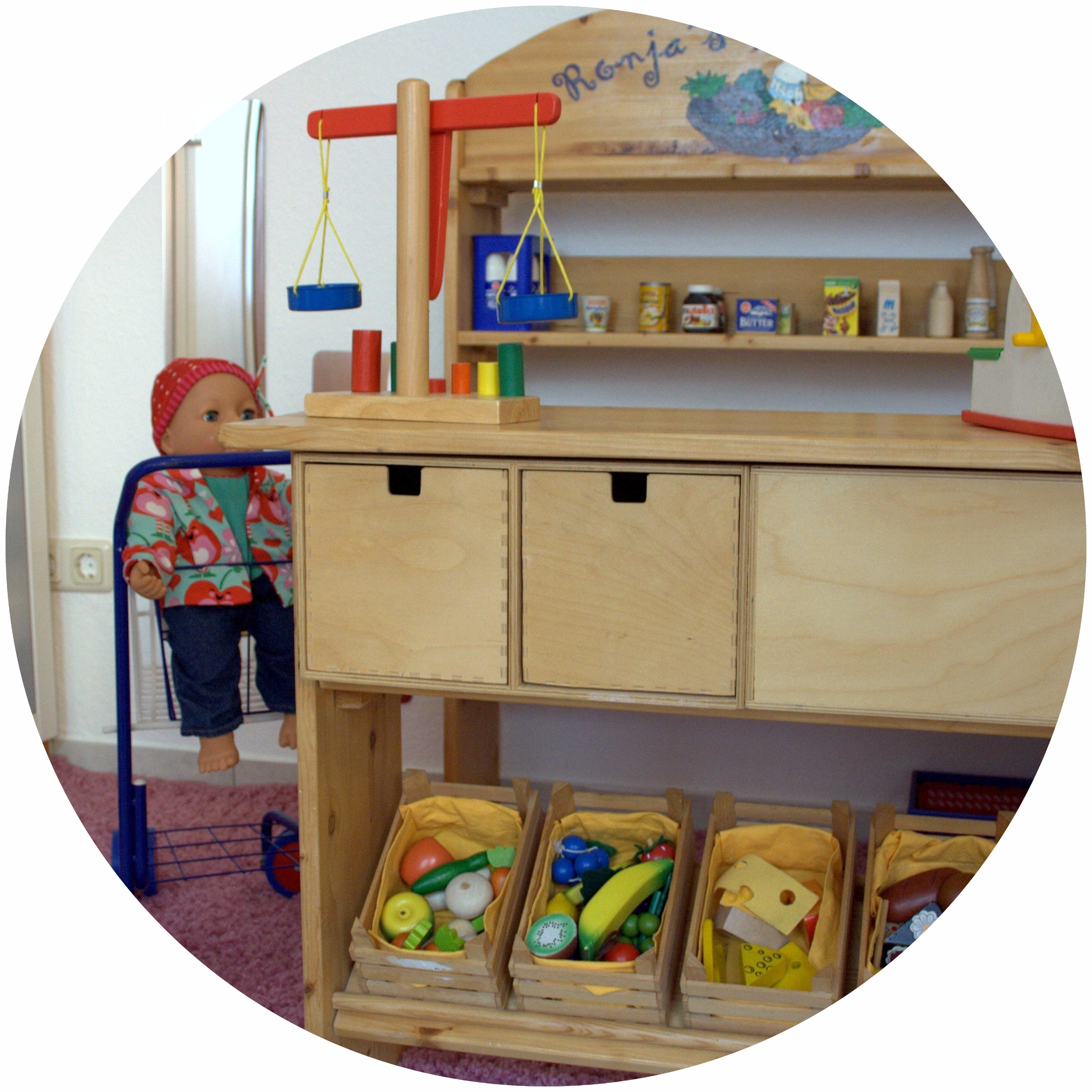 Es gibt verschiedene Spielbereiche wie z.B. eine Puppenecke, eine Bauecke, ein Bällebad und einen Maltisch, die zum Spielen und Bewegen einladen. Ausserdem hat natürlich jedes Kind ein eigenes Bettchen und es gibt eine separate Toilette in Kinderhöhe. Auch ein Teil des Gartens mit altersentsprechenden Spielmaterialien und Fahrzeugen, die Küche, der Flur und das Esszimmer können von den Kindern genutzt werden.